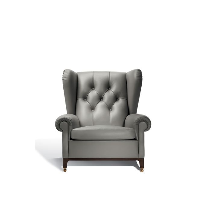 Ampia, solida, imbottita a mano, la poltrona 2019 e una rivisitazione della 1919, completamente rivestita in pelle con una complessa lavorazione artigianale. Tra antichità e innovazione.