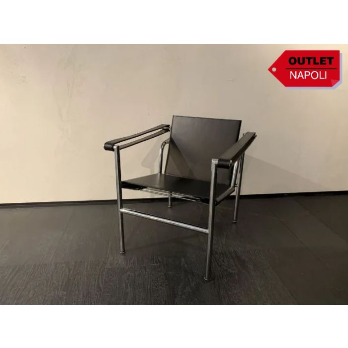 Seduta, schienale e braccioli in cuoio colore nero.